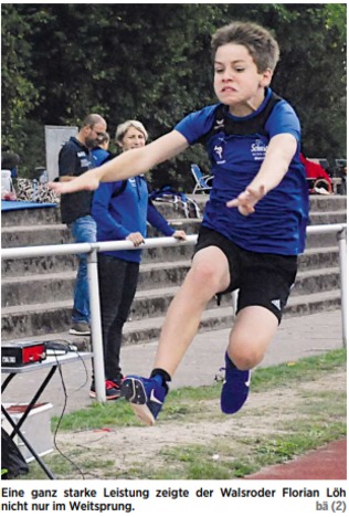 SCHNEVERDINGEN (bä). Am Sonnabend fanden die Leichtathletik-Kreismeisterschaften der Jahrgänge U16 bis U12 in den Einzeldisziplinen in Schneverdingen statt. Am Start waren 56 Jungen und Mädchen, das sind kaum mehr als kürzlich beim Rundenwettkampf in Rethem. In den meisten Vereinen im Südkreis, aber auch im Nordkreis siecht diese Sportart zurzeit vor sich hin. "Gerettet" wurden die Wettkämpfe diesmal nur durch die Schützlinge von Annette und André Funck vom TV Jahn Walsrode, die allein mit 20 Nachwuchsathleten vor Ort waren, also etwas mehr als einem Drittel aller Wettkämpfer. Doch nicht nur von der Breite her waren die Walsroder gut aufgestellt, sie sorgten auch für herausragende Resultate bei dieser Meisterschaft. Allen voran Mika Funck (M 14), der über 80 Meter Hürden mit 13,1 Sekunden eine persönliche Bestzeit lief, im Hochsprung 1,48 Meter schaffte, im Ballwurf auf tolle 54 Meter kam und im Weitsprung bei 4,45 Metern landete. Letzteres nimmt sich allerdings bescheiden aus zu den 5,14 Meter, die sein Vereinskamerad Laurenz Badenhop vorlegte, der auch schnellster über 300 Meter war in 40,4 Sekunden. Die Liste der Jungen und Mädchen vom TV Jahn Walsrode, die einen oder auch mehrere Siege davontrugen, lässt sich beliebig fortsetzen. Mika Alexander Woldt (M13) siegte über 60 Meter Hürden (10,7 s) und im Ballwurf mit 49,50 Metern. Er wurde im Weitsprung (4,09 m), im Hochsprung (1,32 m) und über 75 Meter (10,4 s) Zweiter. Noch erfolgreicher war Florian Löh (M12). Er siegte im Hochsprung (1,36 m), im Weitsprung (4,40 m) und im Wurf (42,0 m). Lediglich über 75 Meter war sein Vereinskamerad Ruwen Albrecht mit 10,0 Sekunden schneller. Löh wurde Zweiter in 10,2 Sekunden. Bei den Jungen M11 führte kein Weg an Aaron Wöhlk vorbei: Sieger über 50 Meter (7,8 s), im Weitsprung (3,62 m) und mit dem Ball (30,50 m). Ebenso stark präsentierte sich Joshua Veith (M10), der im Sprint der absolut Schnellste war (7,5 s) und im Weitsprung (3,85 m) und Hochsprung (1,20 m) dominierte. Beim Wurf mit dem Schlagball sprang ein anderer Walsroder für ihn in die Bresche: Mattis Woldt siegte mit 33 Metern. Die jungen Damen standen ihren männlichen Pendants kaum nach. Über 300 Meter ließ sich Ronja Funck (W14) Platz eins nicht nehmen (44,9 s), ebenso im Ballwurf (49,0 m). Luka Dierking (W14) übersprang als einzige 1,52 Meter. Bei den Mädchen W13 hieß die Siegerin über 60 Meter Hürden Yvonne Maier (12,7 s). Im Ballwurf schaffte sie die beste Weite (40,0 m). Nur Elisabeth Sofie Röpe (LG Fallingbostel) konnte ihr mit 39 Metern das Wasser reichen. In der Altersklasse W12 sicherte sich Natalie Schichau (LG Fall) zwei Titel: Über 75 Meter (11,5 s) und beim Ballwurf mit neuer persönlicher Bestleistung (36,50 m). Den Wurf W11 gewann Hanna Lotta Rickenberg (TVJ) mit 31,50 Metern, bei der W10 siegte ihre Vereinskameradin Chantelle Adamski (33,50 m). Für weitere gute Ergebnisse in Schneverdingen sorgten Paul Matern (M13) über 75 Meter (10,2 s) als Sieger sowie Kjell Voß (M14, LG Fall) über 100 Meter (14,1 s). Emma Suljic (W15) gewann den Hochsprung (1,40 m) vor ihrer Vereinskameradin Nora Brunkhorst (1,32 m). Paul Jäh (LG Fall) wurde viermal Zweiter. Cheyenne Beckefeld (LG Fall, W10) stellte mit 8,3 Sekunden im Sprint eine persönliche Bestleistung auf und schaffte 3,38 Meter im Weitsprung. |