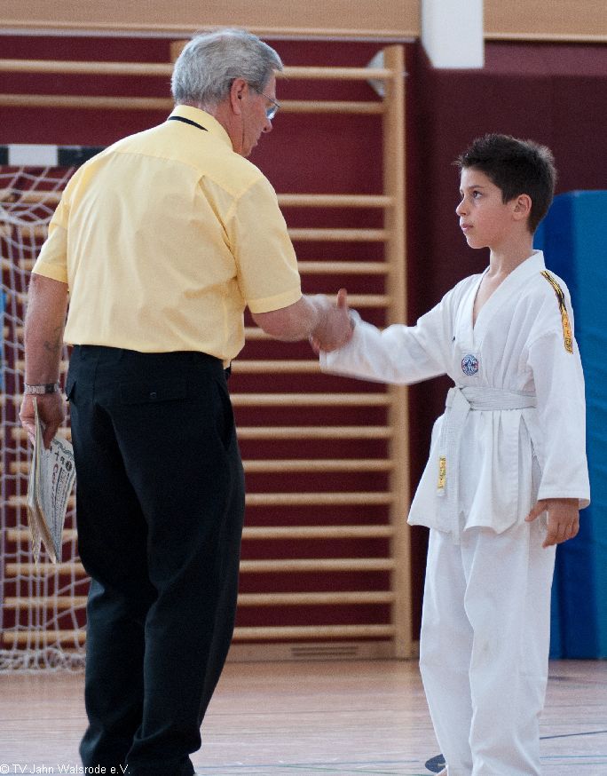 Kurz vor den Sommerferien starteten 27 Taekwondoka vom TV Jahn Walsrode noch mal richtig durch. Die Teilnehmer vom weißen bis zum roten Gürtel im Alter von 5 bis 52 Jahren stellten sich der Gürtelprüfung zur Erlangung des nächsten Kup-Grades. Dazu zeigten sie die in den verschiedenen Prüfungsdisziplinen geforderten Techniken und wurden dabei von Ivo Bujewitsch, Lizenzprüfer der Euro Taekwondo Federation, in ihren Fähigkeiten bewertet. Nach bestandener Gurtprüfung konnten die Teilnehmer eine offizielle Urkunde und ihre neue Gurtfarbe in Empfang nehmen. Daniel Bistritz und Jens-Carsten Grünhagen schafften nach sieben, bzw. fünf Jahren kontinuierlichen Trainings den Sprung zum rot-schwarzen Gürtel und haben damit alle Schülergrade durchlaufen. Die Zulassung zur Schwarzgurt-Prüfung können sie nach einer weiteren, in der Regel mehrjährigen, intensiven Vorbereitung und der erfolgreichen Absolvierung spezieller Dan-Vorbereitungslehrgäng erhalten. Zudem müssen sie auf Wettkämpfen ihre Eignung zum Schwarzgurtträger unter Beweis gestellt haben. Nach Erfüllung dieser Kriterien können sie sich einer Dan-Prüfung stellen, bei der ein Gremium höchster Dan-Träger Deutschlands über die Vergabe des Schwarzen Gürtels entscheidet.