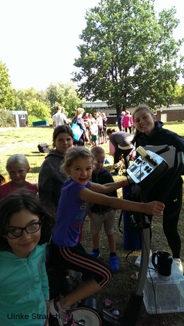 Am Samstag, den 08.09.2018 haben einige Kinder aus den Kinderturngruppen am Kreisturnfest teilgenommen. Ziel war es, den Kindern das Wettkampfgeschehen nahe zu bringen. Treffen war um 08.00 Uhr am Klosterseeparkplatz, pünktlich ging es mit dem Bus los nach Munster. Das Turnfest hielt für alle Altersgruppen etwas bereit. Als Erstes stellte sich die Gruppe dem Handstand TÜV auf dem Außengelände, welcher einige Teilnehmern schon mal auf die Probe stellte. Dann ging es weiter in die Halle zum Trampolin- und Airtrack- springen. Das hat allen viel Spaß gemacht. Auch das Fechten haben einige von uns ausprobiert. Im Anschluss ging es wieder an die frische Luft zur Slack-Line und zum Tischtennis spielen, eine neue Erfahrung, denn es wurde am Runden Tisch im Kreis gespielt. Beim Fahrrad-Ergometer wurden von uns Glühbirne zum Leuchten und Radio und Wasserkocher zum Laufen gebracht. Sehr schön war auch, das wir den Turntiger persönlich kennengelernt haben. Beim anschließenden Fitnesstest musste gefühlt, getragen und getastet werden, Wäsche aufgehängt und zusammengelegt werden. Auch dabei gab es viel zu lachen. Alle Teilnehmer haben sich viel Mühe gegeben und wurden mit einer Medaille belohnt, Fazit...es war ein schöner Vormittag. |