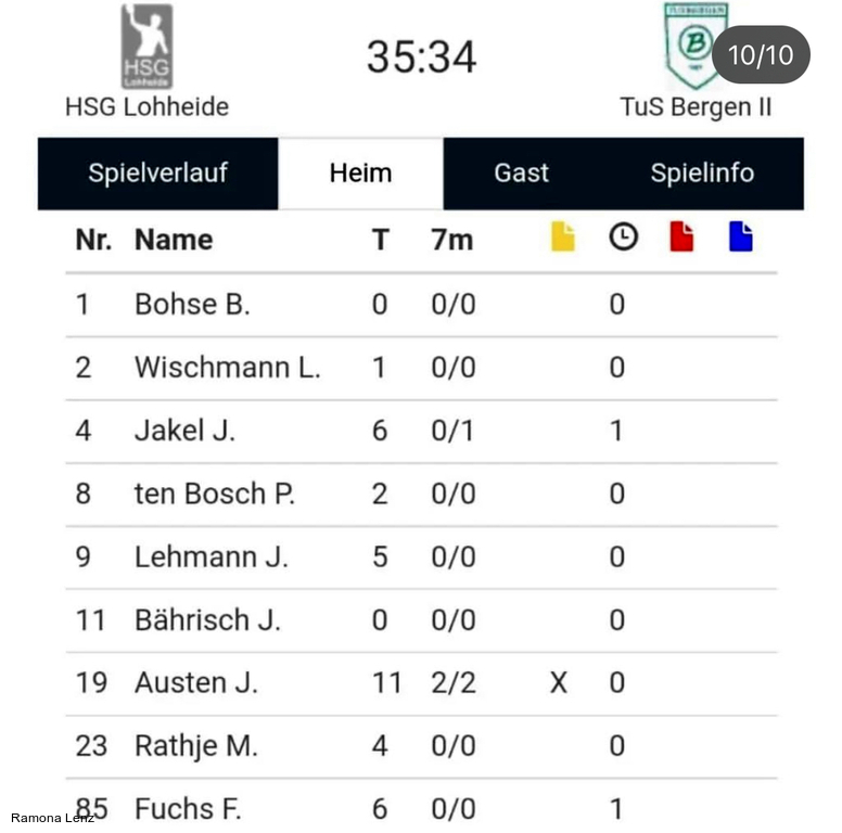 Auch die Schlussphase wurde wurde nochmal recht heiß, denn es waren nur noch 20 Sekunden zu spielen, beim Stand vom 35:34. Druck hatte unsere erste Herren, weil Zeitspiel angezeigt war. Doch nach einem letzten Einwurf ertönte die Uhr und es blieb beim wohlverdienten 35:34 Sieg!