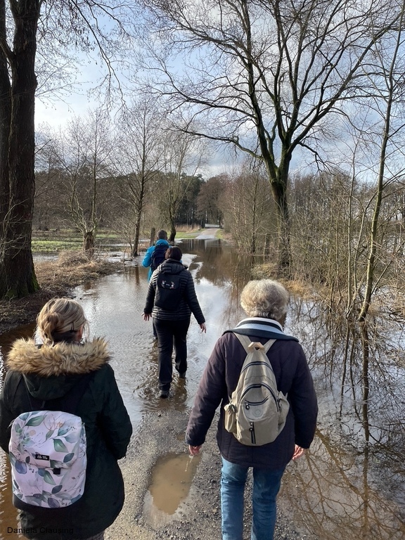 Anfang Februar haben rund 30 Aktive der Tanzsportabtkeilung des TV Jahn Walsrode für ihre traditionelle Winterwanderung, diesmal organisiert von Kerstin Schwanke, die Tanz- gegen Wanderschuhe getauscht. Von Kirchboitzen aus ging es über Neumühlen nach Altenboitzen und durch Feld und Wald wieder zurück. Während der insgesamt 12 Kilometer gab es jedoch einige unerwartete Hürden. Das Hochwasser hatte Teile der Strecke überflutet, sodass die Beteiligten kurzerhand die Schuhe auszogen und die Hosen hochkrempelten. Gut, dass es zumindest von oben trocken blieb und sich bei frühlingshaften Temperaturen sogar die Sonne zeigte. So tat das unfreiwillige Fußbad der guten Laune keinen Abbruch. Als Belohnung wartete im Anschluss an die Wanderung das gemeinsame Grünkohlessen in gemütlicher Atmosphäre. Dabei freuten sich alle schon auf die Wanderung im nächsten Jahr, dann mit Gummistiefeln im Gepäck.