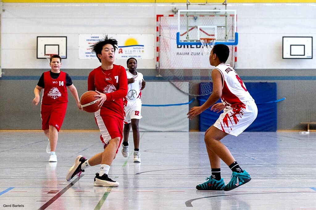Mit zwei Siegen im Januar für die U14 des TV Jahn positiv gestimmt zum Auswärtsspiel beim TuS Komet Arsten. Acht Spieler sowie Trainer Benjamin Ahmetaj sahen ein gutes erstes Viertel. Center Moritz Fischer, der am Ende des Spieles mit 36 Punkten mehr als die Hälfte aller Punkte machte, trug gleich acht der achtzehn Punkte bei und das junge Team mit sechs Punkten führte. Das nur zwölf Punkte zugelassen wurden, zeigte die starke Verteidigungsarbeit. Je näher die Halbzeit rücke, desto mehr ging die Konzentration in der Defense verloren und die voll besetzte Bank der Arstener Gastgeber mit mehr Wechselmöglichkeiten zeigte Wirkung. Die Walsroder blieben weiterhin sehr fair und hatten auch am Ende weniger Fouls als die Gastgeber. Auch David Vu, der durchspielte, zeigte eine tolle Leistung, denn er brachte den Ball im Aufbau trotz Ganzfeldpresse der Gastgeber sicher in die gegnerische Hälfte. Mit sechs Punkte (71:65) verkaufte sich die Mannschaft beim Tabellenführer sehr gut und ist zuversichtlich für die kommenden Spiele.